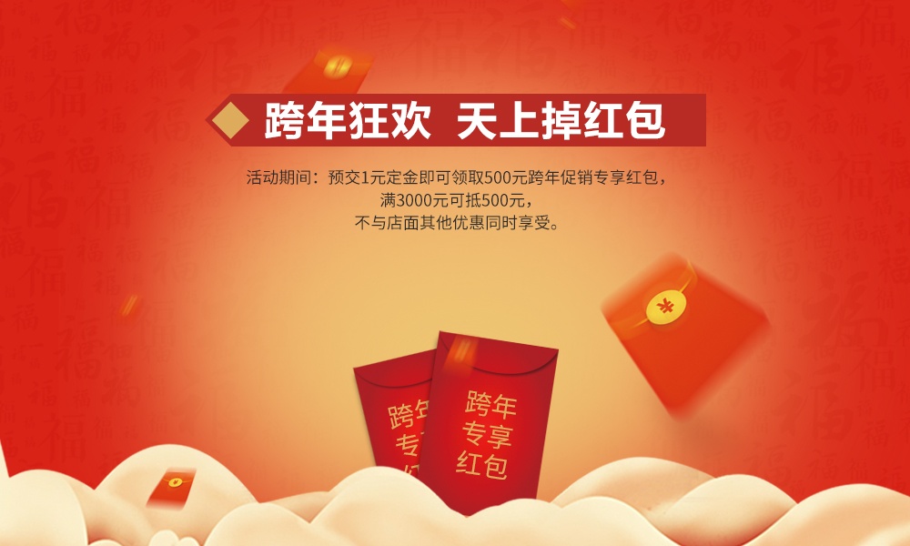 活動期間預交定金即可領取跨年促銷專享紅包